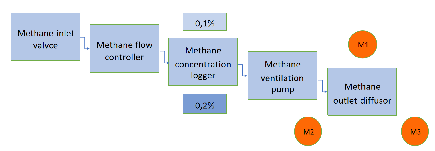The aim of this experiment was to compare measurement (M1-M3) results of the BL-CH4 Drone methane detector (LMDS) under controlled releases from the Barbara experimental mine ventilation system.
