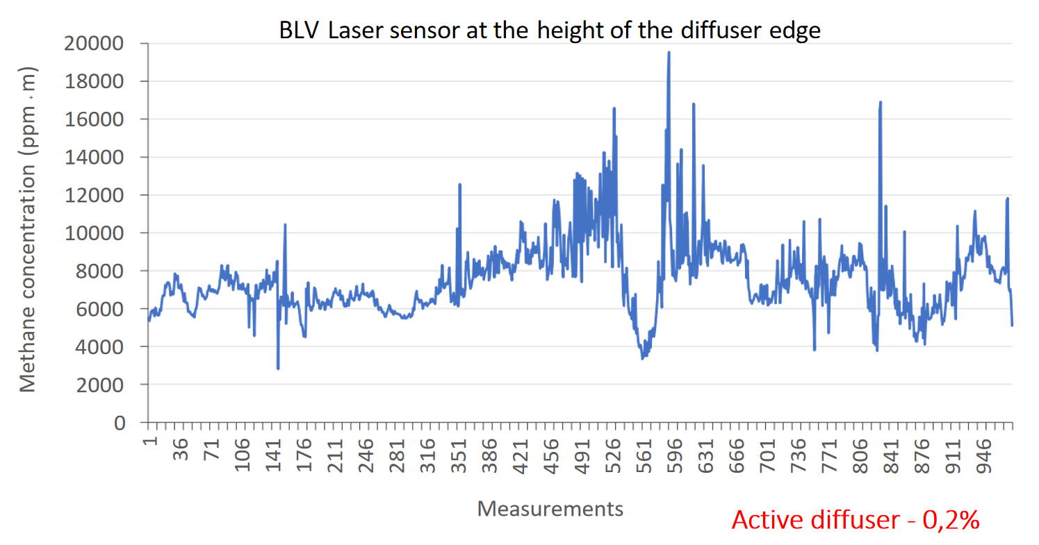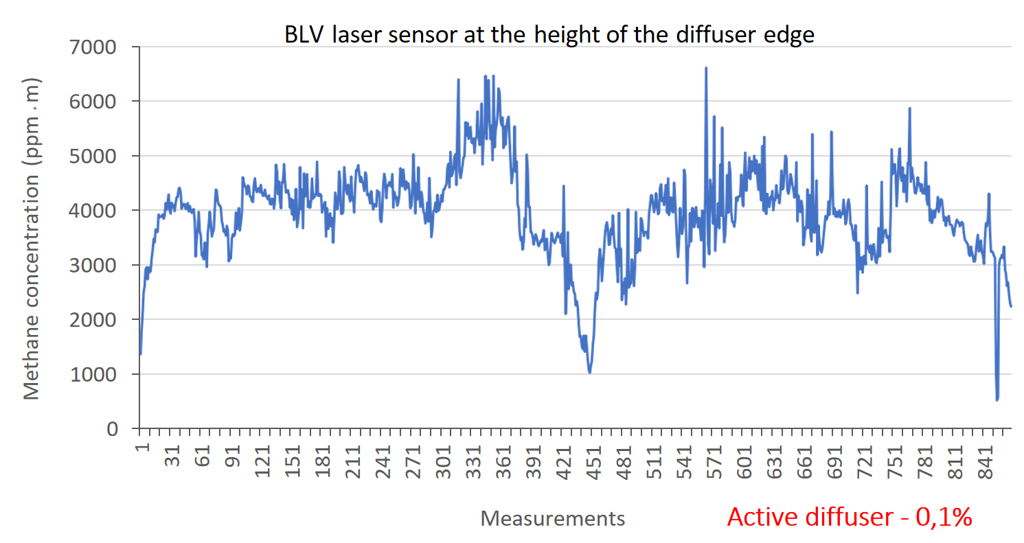 5. The obtained results confirmed the high sensitivity of the BLV CH-4 Drone methane detector to changes in the concentration of released gas also the effectiveness of the data recording using the app.